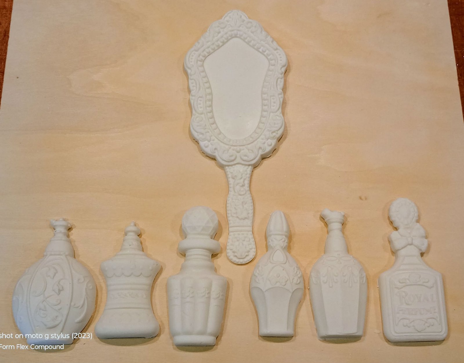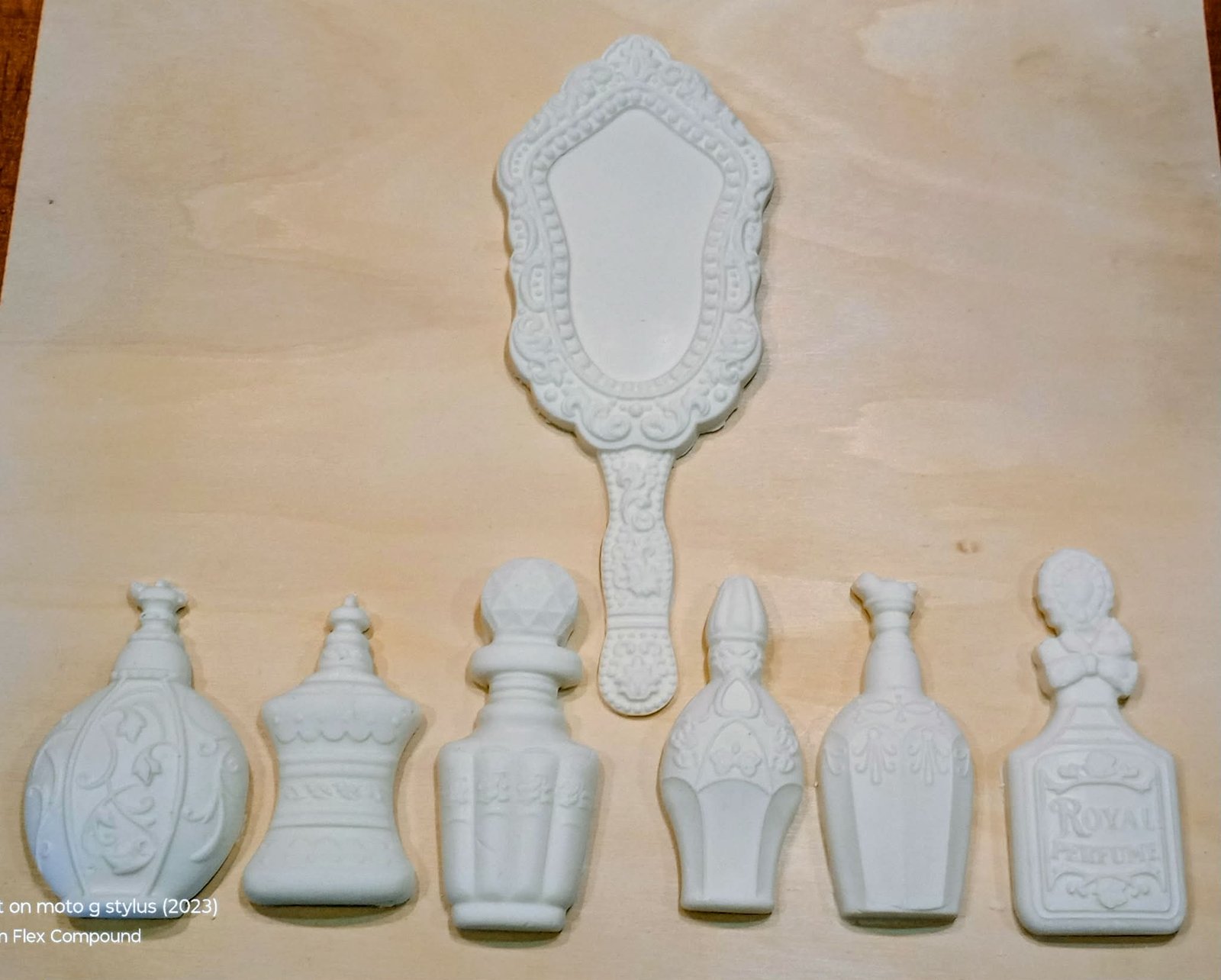 This bundle has been used on a project by Home Sweet Create. This bundle includes 6 small bottle castings and a handheld mirror casting.